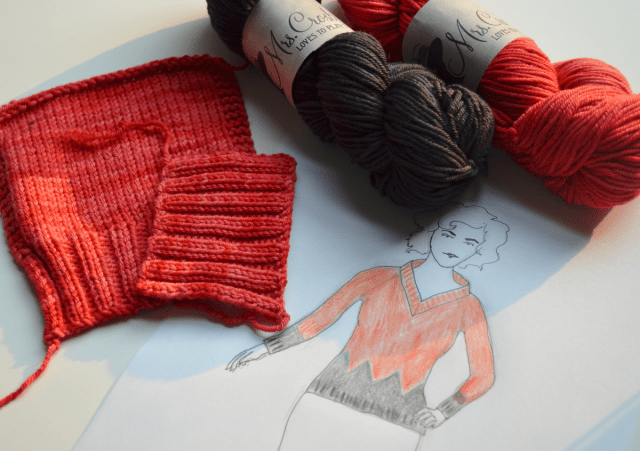 I completely fell in love with these two colors of Mrs Crosby Steamer Trunk, and knew the vibrant red/black combination would be perfect for a Twin Peaksy pullover. I designed a colorwork pattern and got to work on this sexy raglan — not two words I use together often… but it applies here!